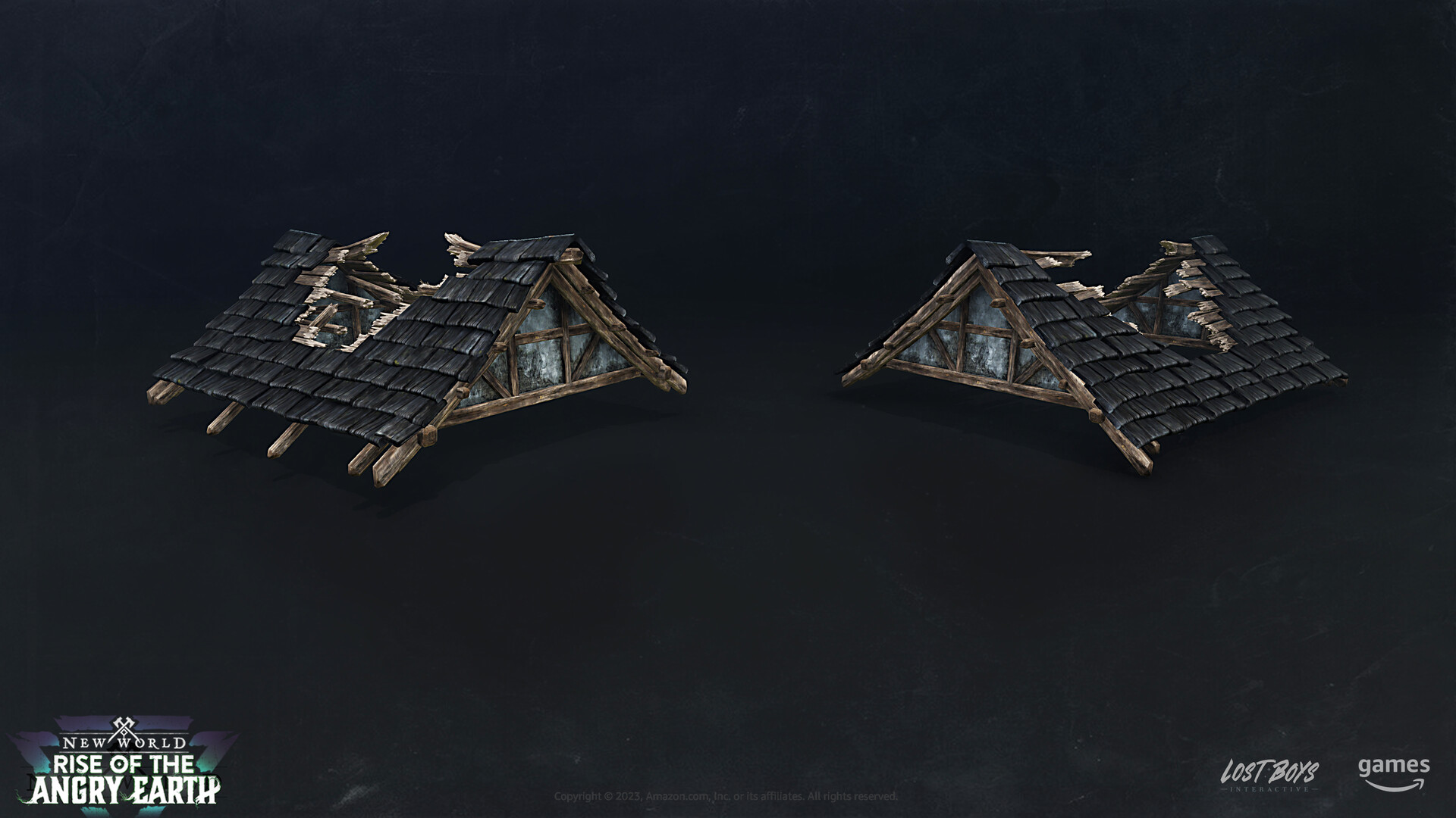 I was responsible for altering these roofs from the Amazon Games existing kit and taking them through a destruction pass to aid in environmental story telling of Tanglesnap Hollows.